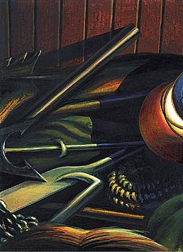 bei den Gerätetruhen angekommen, versucht er, seine kindlichen